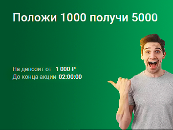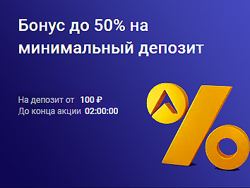 Сумма вносится одним депозитом. При депозите 5000 рублей бонус составит 100% к депозиту (+5000 руб).