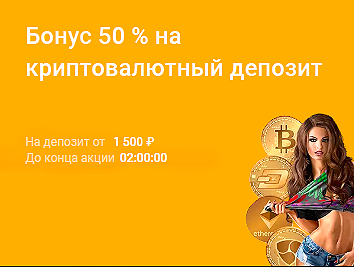 В этой акции вы можете получить 50% к депозиту в криптовалюте.